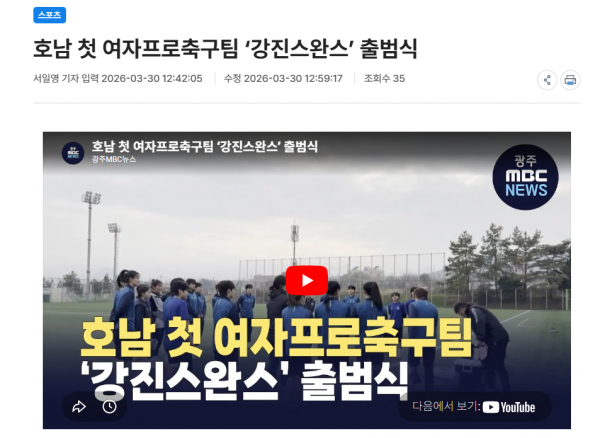 광주mbc 호남 첫 여자프로축구팀 ‘강진스완스’ 출범식 (2026.03.30)